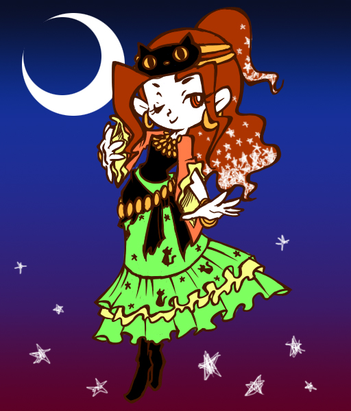 そして昼のパレード「ディズニー・ハロウィーン・ハッピーホーンテッド・パレード」。んもう!出てくる物がいちいちかわいい!キャラクターが乗ってるフロートやダンサーさんの衣装とかが好みのデザインばかりで資料がてら写真を大量に撮ってます。上のイラストもダンサーさんの衣装の一つ。キャラクターは今回、デイジーがすごくかわいかった~。緑のメイド衣装を着て羽ぼうきをもってます。他のキャラクターもすごくかわいくって良かった。やっぱりハロウィン最高!